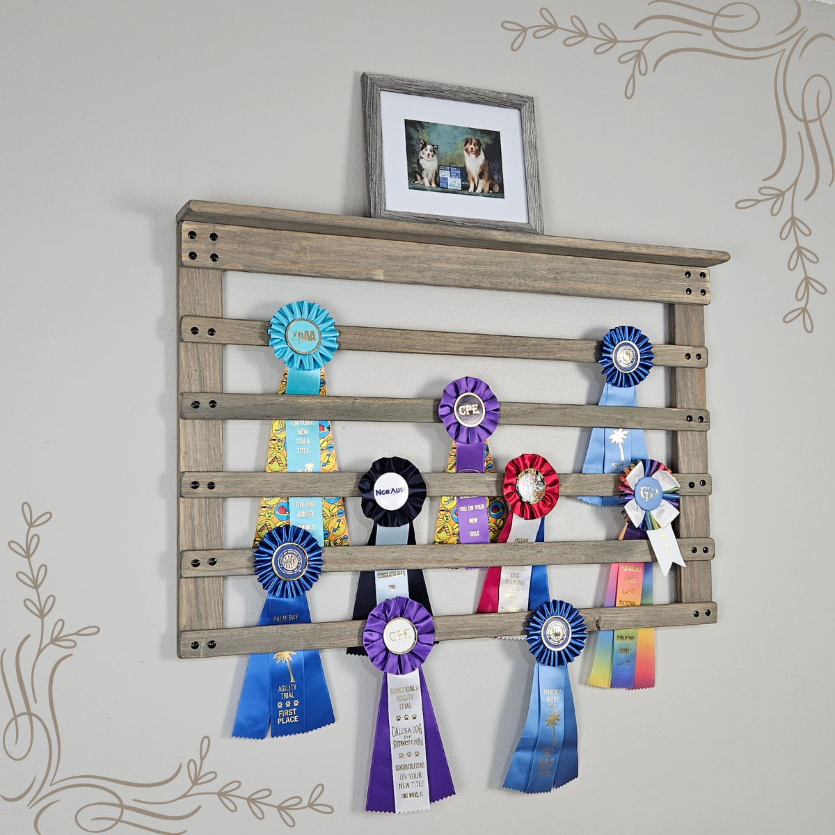 Showcase your wins in style with our stunning handcrafted display holder! Fantastic for organizing awards from dog agility/sports and equestrian events.